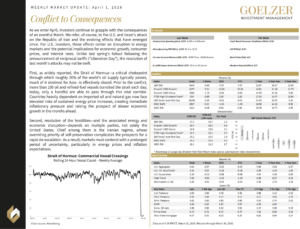 As we enter April, investors continue to grapple with the consequences of an eventful March. We refer, of course, to the U.S. and Israel’s attack on the Republic of Iran and the evolving effects that have emerged since. For U.S. investors, those effects center on disruption in energy markets and the potential implications for economic growth, consumer prices, and interest rates. Unlike last spring’s fallout following the announcement of reciprocal tariffs (“Liberation Day”), the resolution of last month’s attacks may not be swift.